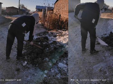 在实践前,胡玉良观察到路边的垃圾杂物会有人定期清理,通过询问得知为了保护环境美化街道各村现在都有专门的清洁人员。了解情况之后,在他们再来清洁时,与他们进行了交流表达了想与他们一起工作。我主要就是先把路面杂物都一堆堆聚在路边以为天气太冷很多杂物都冻在一起了我使用铁镐凿开。然后在和清理人员一起装车,拉到专门的垃圾箱。通过这些劳动感觉到了环卫的辛苦,应该减少乱扔垃圾的行为,每个人都应该用自己的行为保护环境,以后有时间会经常帮助环卫一起维护街道的整洁。我意识到社会实践的重要性不仅仅在于活动本身,更在于活动背后的思考和总结。活动后,应该进行反思和总结,思考如何更好地完成活动、如何改进自己的不足。这些思考不仅让我对活动有了更深入的了解,也让我对自己有了更深入的认识。
