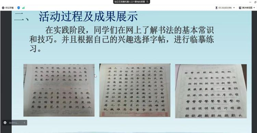 实践学期已经过去的三周里,同学们表现优异,积极完成任务,在汇报中总结全面,得到老师好评。此次会议汇报主要内容为实践学期各同学任务已完成情况,未完成项目,完成任务的不足及下一步计划和实践学期的收获和成长。会议中同学利用PPT等形式进行汇报,汇报过程中同学们条理清晰明确。汇报结束后朱蕾老师根据汇报情况,对学生的工作给予了高度评价和认可并指出了今后共同努力的方向对学生们实践学期目前完成的任务情况进行总结,督促学生们按时完成打卡任务,发布报道注意质量,要有特色有亮点。最后由朱蕾老师对接下来的实践学期任务进行部署,并要求同学们在接下来的任务中做到高质量,严要求。同时也预祝学生们在新的一年承载新希望开启新征程,让接下来的实践学期不但有成绩、有特色、更有品质!