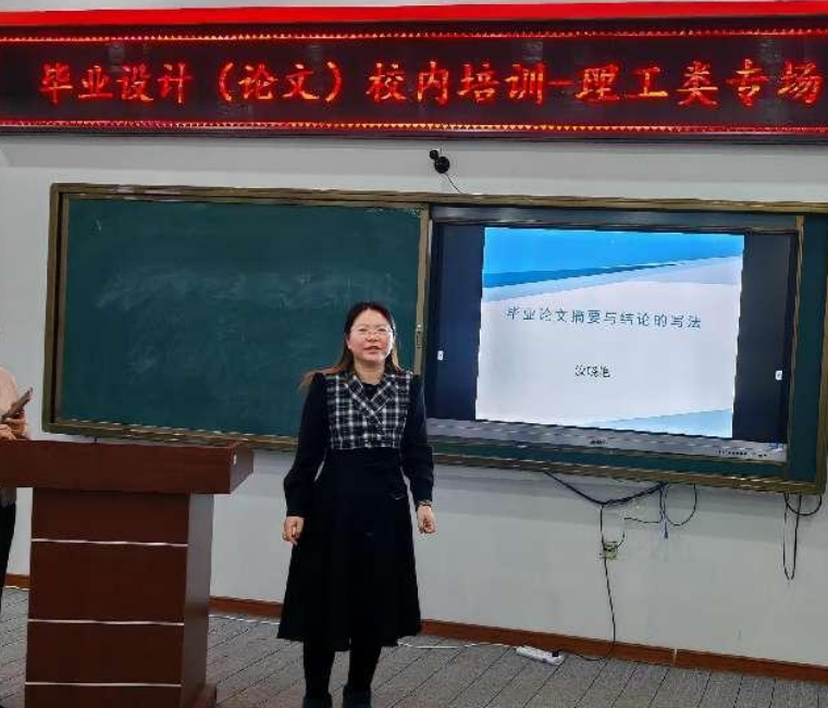 首先由汝晓艳老师进行介绍,主要针对毕业设计(论文)的摘要和结论的写作进行讲解,一方面是摘要和结论文的类型及注意事项进行讲解,另一方面结合具体毕业设计案例,有针对性的进行了经验交流。