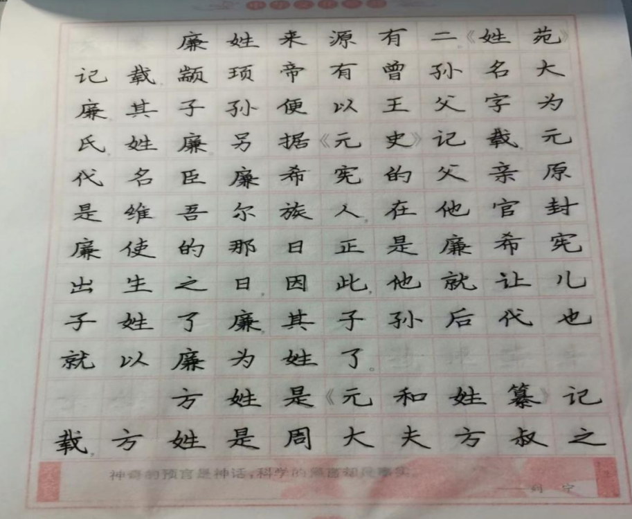 面对以上问题,我们严格要求自己不过焦过躁,耐心写好每一个字,对每一个字进行拆分,拒绝连笔字的出现,讲究一笔一划的来进行书写,在书写过程中把每一个字记载心里,以及对字帖上故事的记述,避免出现左耳听右耳冒的现象。