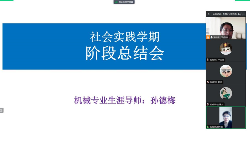 1月20日上午9点,机械专业生涯导师基础部孙德梅组织召开社会实践学期阶段总结会,全体机械专业21级、22级和23级生涯学生按时参会,共6组24人。