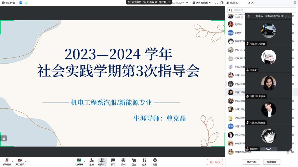 为了更好的掌握学生社会实践学期的完成情况以及指导学生如何进行社会实践学期,生涯导师曹克晶组织汽车服务工程专业、新能源汽车工程专业的生涯学生召开指导会。