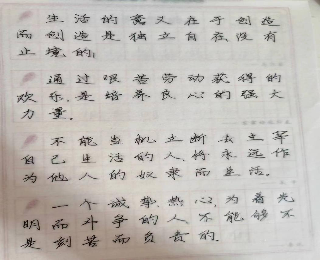 通过使用写字帖,我深刻认识到了字写练习的重要性,写字帖还培养了我的专注力和耐心。因此,我建议大家在日常学习中养成使用写字帖的习惯,无论是小学生还是成年人,在字写练习中都能够收获满满的进步和快乐。使用写字帖是一项良好的习惯,它不仅可以帮助我们提高写字技能,还能培养积极向上的工作态度和精神品质。让我们一起努力,用美丽的字迹书写出自己的精彩人生!