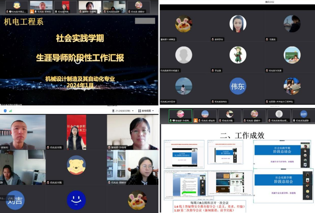 为了促进学校社会实践学期工作,加强各位教师之间的沟通协作。机电工程系辅导员老师肖璐及郝岩利老师组织机械专业生涯导师于1月22日下午3:00以线上的方式进行了一次“社会实践学期生涯导师阶段性工作汇报”大会。