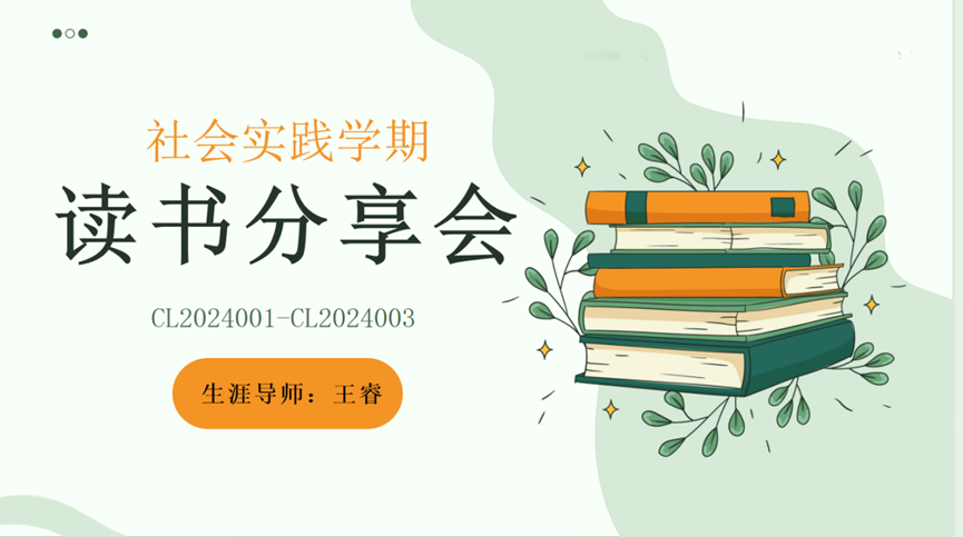 在社会实践学期其中一个必选项目为读书交流项目,要求每位同学利用社会实践学期深度阅读3本书籍,在本周王睿老师召开读书分享会,一是检查同学们的读书情况,二是让同学们分享通过读书带来的收获与感想。