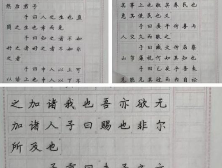 本周的社会实践,我们组进行练字,我们书写变得更加规范,原本并不美观的字体也在我们的努力下变得工整,虽然算不上是很美观但也没有了之前的杂乱无章。练字是能修身养性的本浮躁的我们也在练字的过程中找到了宁静。在练字的过程中我们的专注力有很大的提升,练字需要集中精力,关注于字体的结构和布局,这也很培养我们的耐心。练字让我们感到放松,练字可以平静心境,缓解紧张情绪,对身心健康有很大的益处。现在练就一手好的字体也能在以后的工作中占有一定的优势,好的字体给人印象深刻,也能体现一个人的修养和气质。