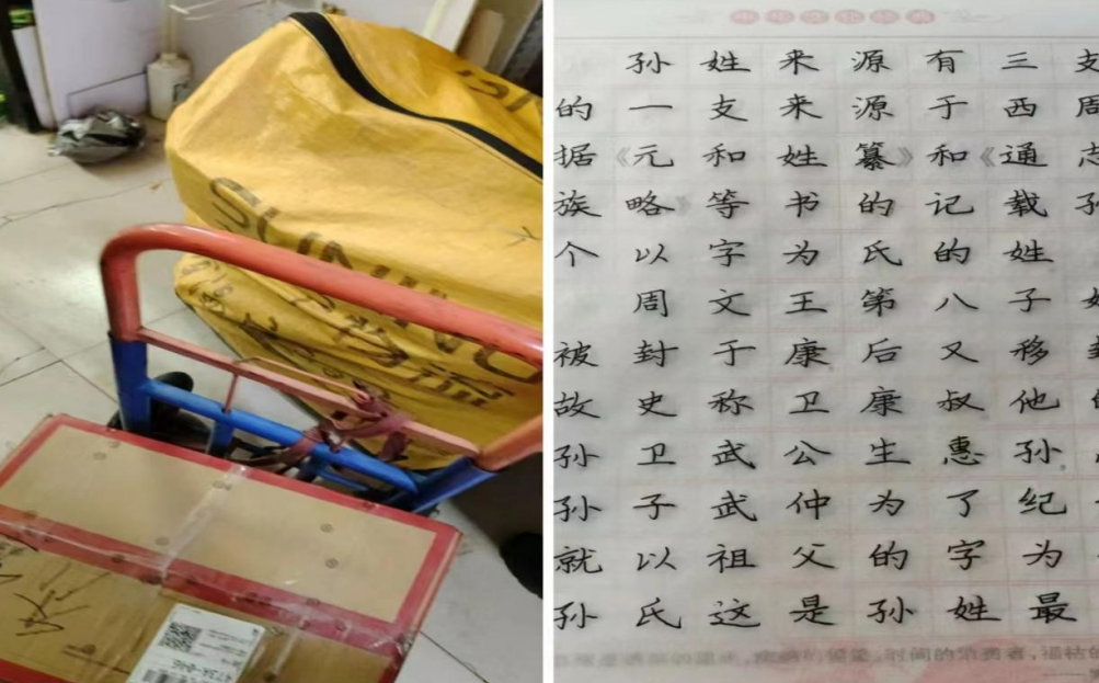 在第二周时,C12024098小组在生涯老师张岩的指导下完成了字帖临摹。由小组组长高兴统一时间展开腾讯会议,高兴进行劳动实践,在乌海市送快递。