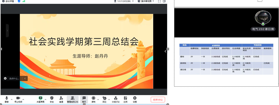1月26日上午电气专业生涯导师赵丹丹召开社会实践学期第三周总结会,此次会议共24人参加。