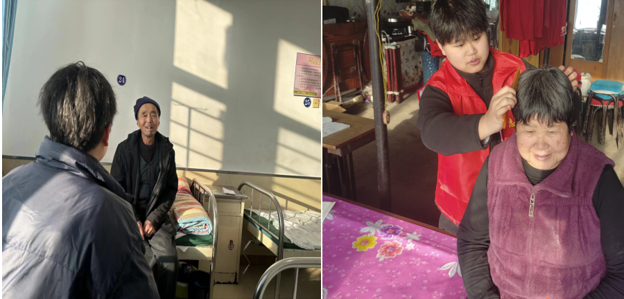 在实践过程中,jqr2024029组学生董华瑞在取得奶奶同意帮助奶奶梳理头发。在帮奶奶梳头发的过程中,同时,与奶奶畅谈生活趣事,家长里短,在一言一行中切实帮助老人、关爱老人。奶奶表示,“已经很久没有人为我这么梳过头发了。很感谢社区,感谢志愿服务,同时也去看望其他老人,与老人们亲切交流,关心他们的生活和健康状况,为他们提供力所能及的帮助和支持,在志愿服务过程中,不仅为老人们提供生活上的帮助,更注重给予他们精神上的关爱和慰藉。同时,她还积极倡导社区居民关注老人,提高大家对老年人的尊重和关爱意识。