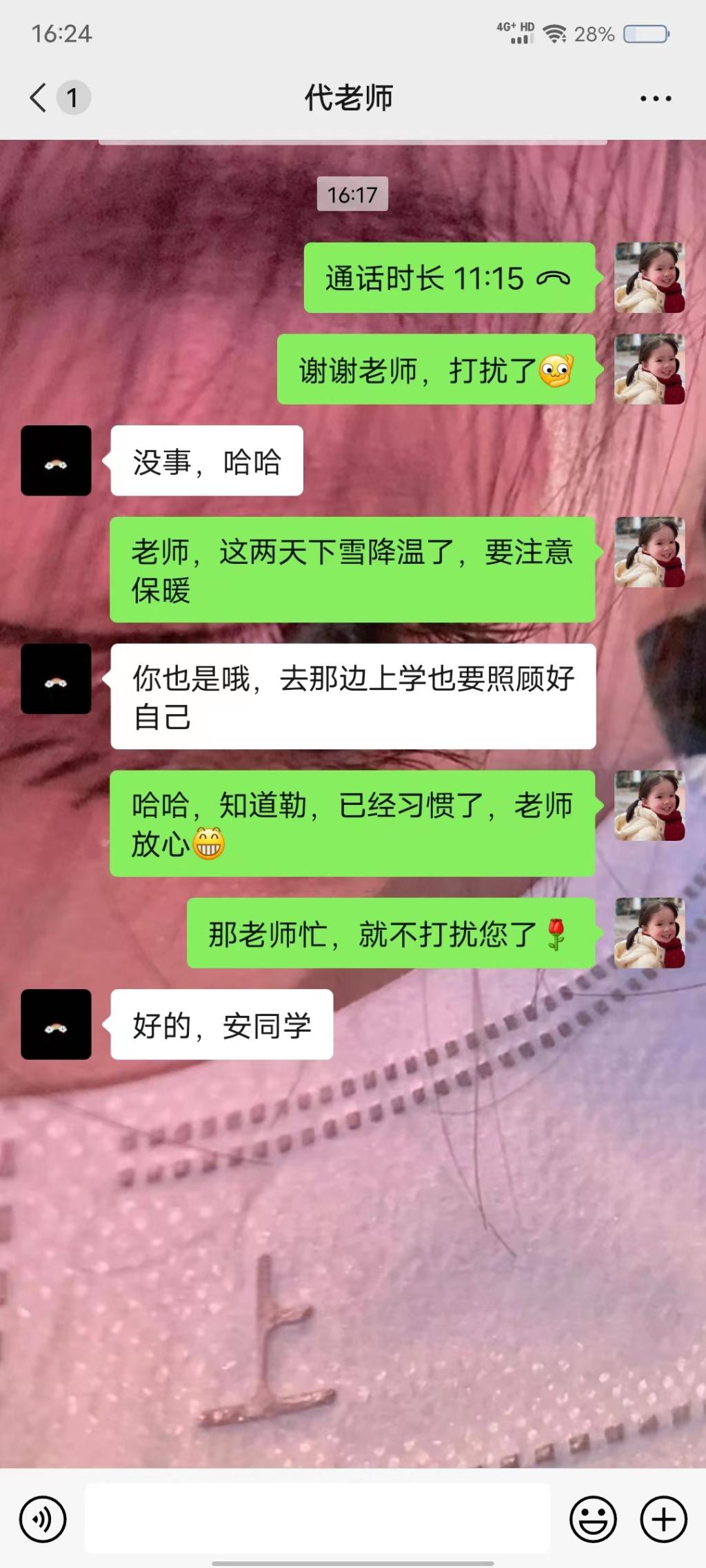 通过线上形式来表达老师对我们的教育之恩,我积极向老师讲述大二本学期的学习情况及下学期规划,让老师给出了见解与指导。同时向老师传达了我对学弟学妹们的祝福与嘱托。