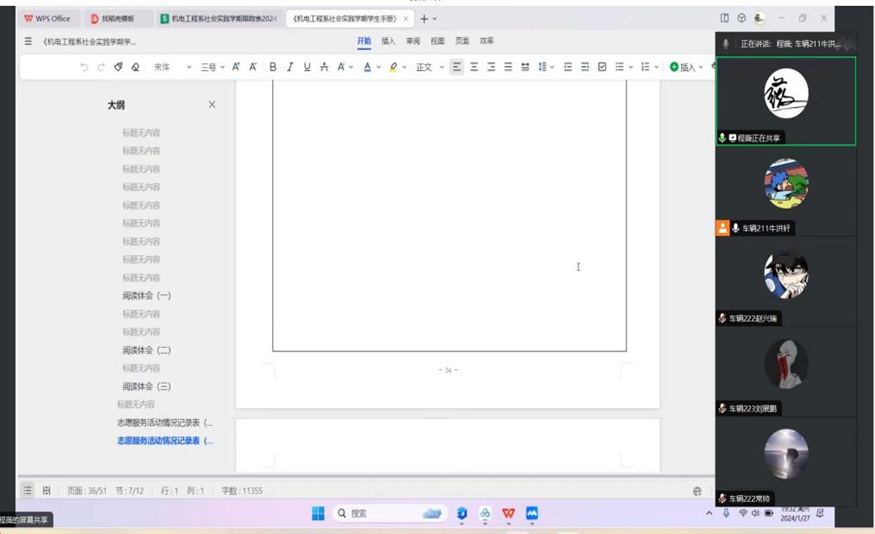 1月27日,程薇薇老师召集了社会实践学期第四周的总结会议。