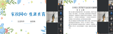 1月28日,曲丽梅老师组织召开了生涯学生家长会,首先曲老师进行了自我介绍,跟家长说明学校生涯导师的作用,同时结合本学期学生的考试成绩和实践学期开展以来学生的表现,与家长共同分析了学生情况,并讲了家长关心的有关学校课程考核要求、降级管理、毕业与结业等相应条款,以促进家长跟教师在不同角色下帮助学生、引导学生,更好度过大学生活。