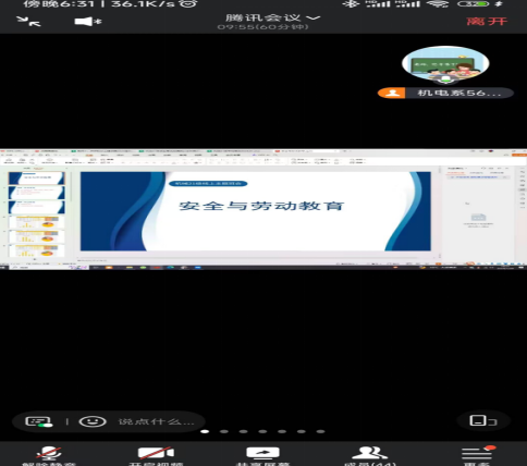 强化劳动观、安全性教育,结合学科专业开展生产劳动和服务性劳动,积累职业经验。我们先是以解决学生目前假期的安全与劳动为主,由张勇老师,1月29日18:30晚,带领机械21级三个班的同学线上开展班会。