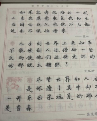 社会实践学期字帖临摹是我们的必选任务,可以锻炼我们的文字书写能力,也锻炼了我们的毅力。书法是一门独特的艺术形式,它不仅是文字的表达,更是一种审美和文化的传承。本次活动吸引了众多书法爱好者的参与,他们齐聚一堂,共同探索书法的魅力。活动现场准备了各种经典字帖,包括楷书、行书、草书等多种字体,参与者们可以根据自己的兴趣和水平选择适合自己的字帖进行临摹。