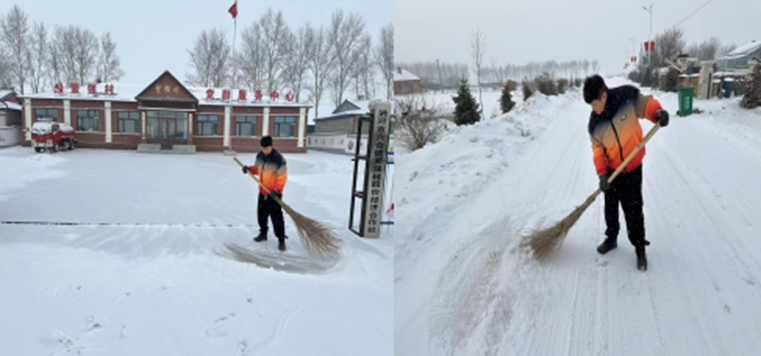 在经过几个小时的努力,我们村的道路的雪被清理干净,环境卫生得到了显著的改善。街道变得更加整洁,村民们在出行的时候也不拍打滑摔倒。看着自己的劳动成果,我们志愿者们都感到非常满足和欣慰。
