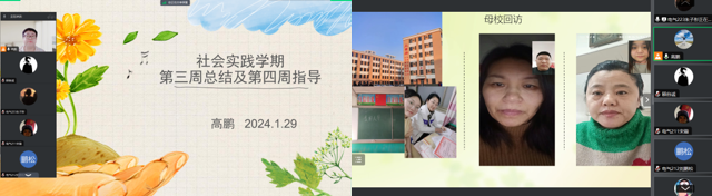 2024年1月29日晚19:00,生涯导师高鹏召开第三周总结及第四周指导会,高鹏老师首先对各小组的社会实践成果进行了验收。每个小组都按照要求完成了实践任务,并在腾讯会议上做了详尽的汇报。