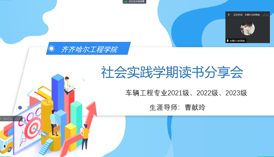 1月30日晚,生涯导师曹献玲通过腾讯会议召开社会实践学期读书分享会,对本周各组的任务完成情况进行了总结和开展线上读书分享会。小组长对本组一周的任务完成情况进行了汇报,把每组存在的问题进行了总结,曹献玲老师针对各类问题和大家进行了探讨以提出了相应的解决方案。
