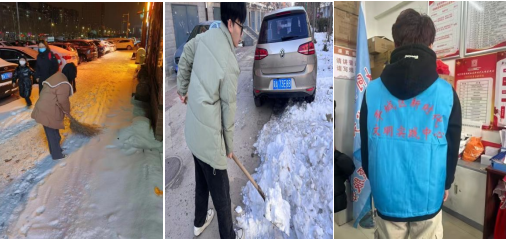 伴随着寒风凛冽,气温骤降,大雪在净化空气的同时也给道路交通及居民的出行带来了诸多的不便,为了给社区的居民一个良好的生活环境,学生们参加了社区开展的志愿服务——为社区清理积雪,以保证居民群众出行安全。