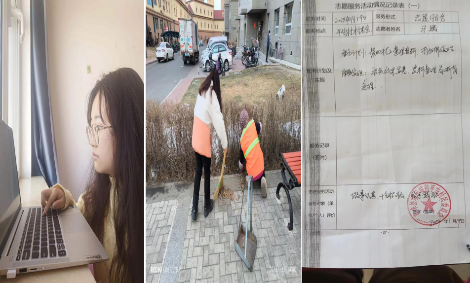 在此次志愿服务中我帮助村委会整理资料看到的家家户户的基本信息让我对我们更加地了解了,我也为我们村的街道进行了打扫因为我们村也有清洁工人所以我跟着他们一起去打扫。
