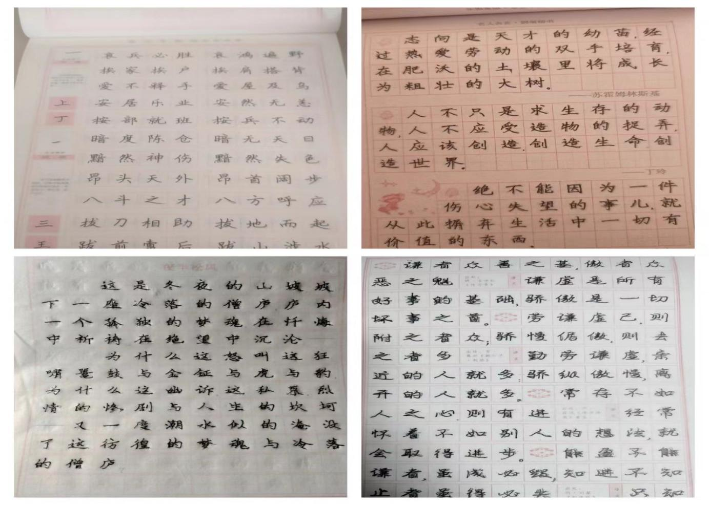 小组成员陈佳豪,李响,李益升,高帅在本周进行了临摹字帖,认真的写字帖上的每一个字,保证作业的质量,认真完成这项作业。