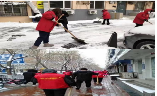 学生们分别在所在的社区里开展了扫雪清雪的服务,帮助社区的工作人员进行扫雪,他们拿着铁锹扫帚等工具,将原本布满积雪的地面已被基本清扫干净,确保了行人行车的安全畅道。随后来到一位独居老人家,进行房间和院子的打扫,老奶奶给我们讲述着他年轻时的经历。