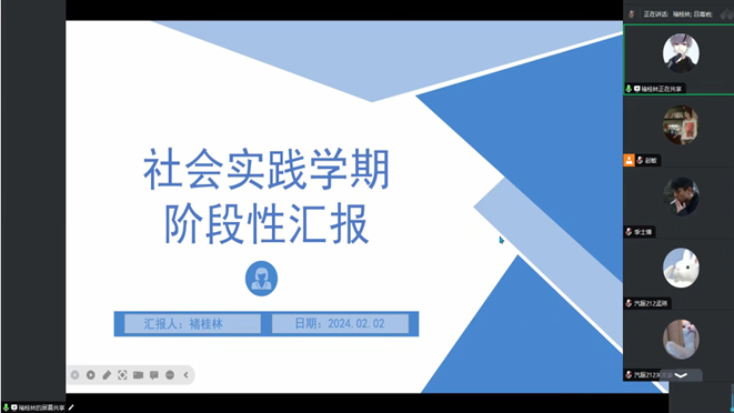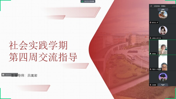 2月2日14:00指导教师在腾讯会议中同全体生涯学生展开了第四周社会实践学期总结会,会议由指导教师吕嵩岩老师组织,目的是回顾指导学生的第四周的成果,总结经验,发现并解决问题,以提升社会实践学期质量和学习效果。以便更好地推进下一阶段的社会实践学期任务内容。