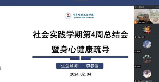 为保证社会实践学期各项任务顺利完成,2月4日晚李春波老师召开了社会实践学期第四周总结指导会暨身心健康疏导会议,全体生涯学生参会。