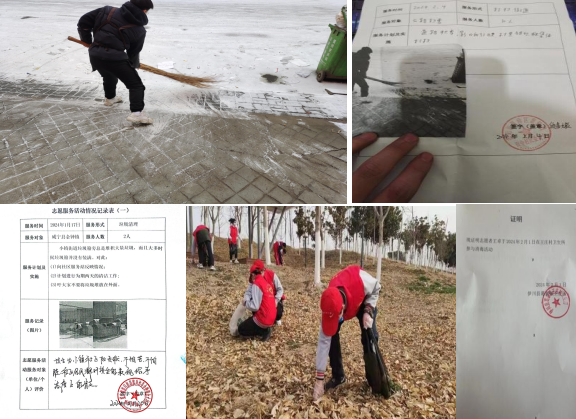 社会实践学期第五周,我们dq2024011小组积极参与学校布置的志愿服务活动,对社会做一些力所能及的事情。1月29日至2月4日,电气213班祖文靖同学在威宁金钟金熙医院协助打扫卫生,为医护人员和患者提供良好的卫生环境;1月15日,电气213龙文桂参加了安大社区的志愿清理活动,将社区内大大小小的角落打扫的十分干净。2月1日到2月3日,电气212班段傲鹏参加田中村党群服务中心组织的道路清扫活动,将道路上的积雪扫到道路两边不影响来往车辆和行人通过。2月2日,电气212班王卓,因为当地卫生院人手不够,自愿加入卫生院的消毒任务,将卫生院内各个角落都喷了消毒液,协助预防病毒的传播。