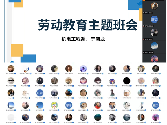 电气21级开展劳动教育主题班会。在社会实践活动当中我们有志愿服务活动和居家劳动在以前的时间我们不会去特意去做那些,但是在社会实践活动的带领下,我们每天主动做家务,在社区进行工作,慢慢的找到了劳动的乐趣也逐渐在劳动中爱上了劳动。