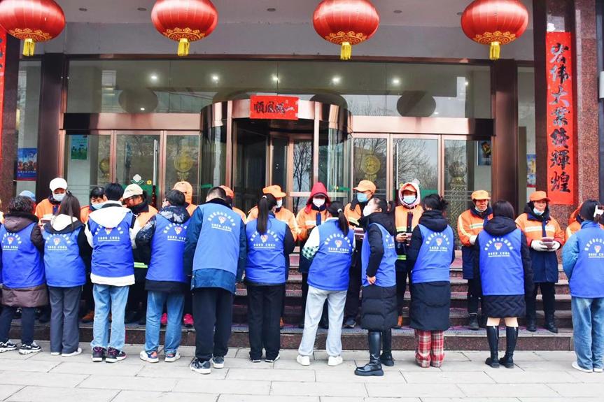 在活动开始前,我们小组进行了充分的准备。在县酒店门前,志愿服务者代表社会将防寒保暖物资送到环卫工人手中,与环卫工人们相互交流,叮嘱他们注意身体。“戴上手套、围上围巾,可以很好地抵御风寒。”贤友保洁公司环卫工人刘阿姨深受感动地说。此次活动共为辖区5家环卫企业的环卫工人赠送了300对春联、300副手套和300条围巾,让环卫工人倍感温暖。