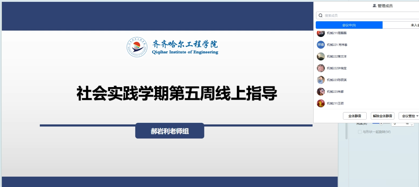 2月16日下午,机电工程系生涯导师郝岩利在线上召开社会实践学期第五次指导会,对本周各组的任务完成情况进行了总结,小组长对本组第五周任务完成情况进行了汇报,郝岩利老师针对各类问题对大家进行了指导,详细解读了社会实践的目的与意义。