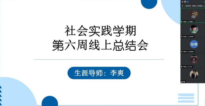 2月20日晚,机器人工程专业生涯导师李爽召开社会实践学期第六周线上总结会,此次会议共九人参加。