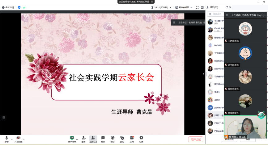 为了让老师和家长齐聚一堂,共同实现“家校携手,共同教育”,生涯导师曹克晶老师于2024年2月22日在线上精心召开社会实践学期家长会。