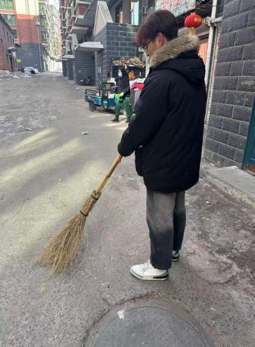 寒假期间,他选择留在社区,参与由社区组织的大学生寒假志愿活动。活动的主要任务是进行社区清洁,清理绿化带、街道和公共设施的垃圾。