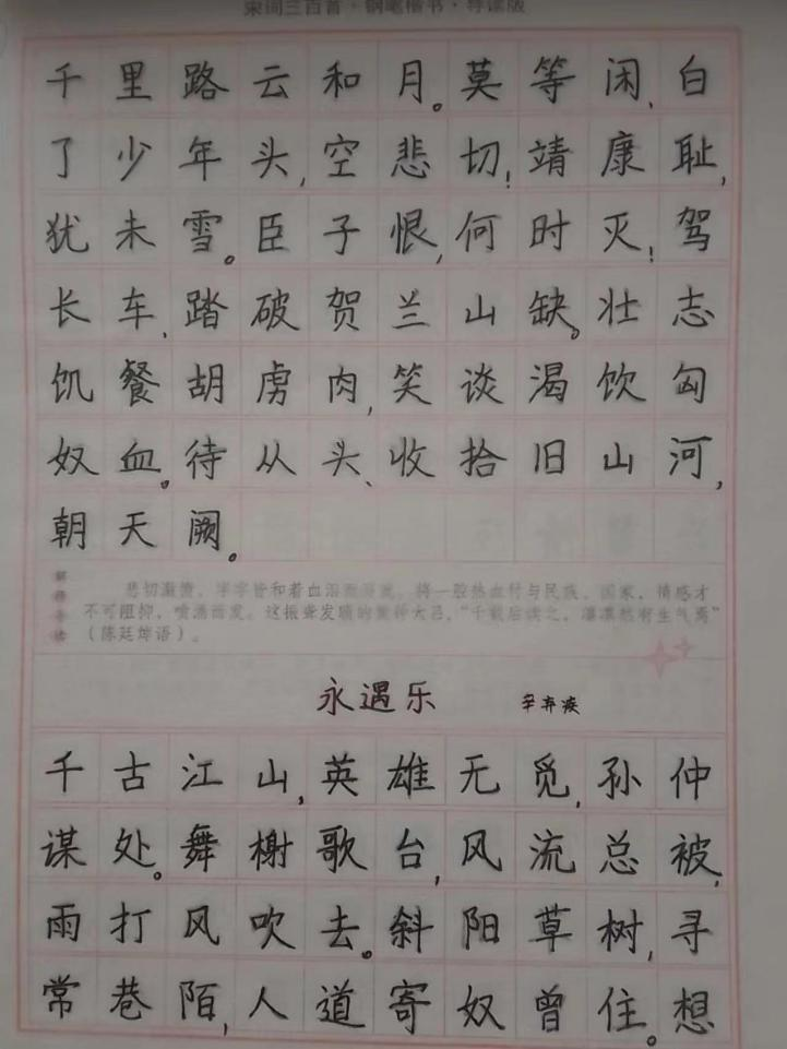 本周,继续临摹宋词三百首,临摹过程中有许多高中学过的宋词,再读时,以是身外之人。回忆起高中的学习宋词的时刻,感触颇深。社会实践学期中,母校回访也是必选项目。回到母校,看到熟悉的场景,想起高中的点滴,眼前人与记忆中重和,亲切的关心,和来自学弟学妹提问大学是什么样的。这可能就是母校回访的意义。