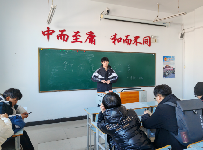 在会议的开始,班长代领班级干部进行自我介绍,并叙述个人职责以帮助新同学进一步融入班级,了解班级内部结构。最后由新同学进行发言,新同学面对大家热情地介绍自己。大家纷纷鼓掌表示欢迎与祝贺。