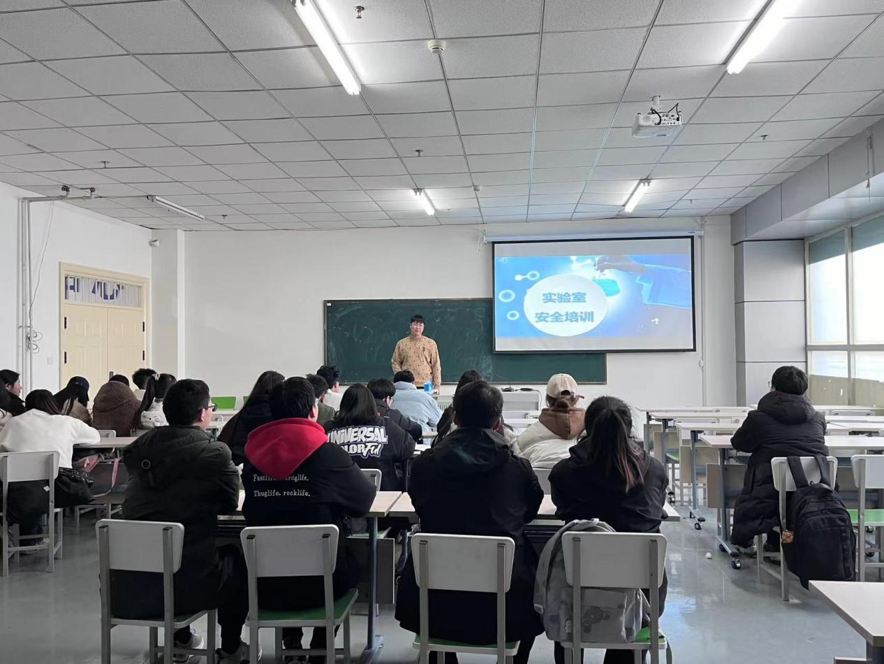 实验室主任付川川以提高实验室安全观念、强化师生安全意识为基础,结合学校实际情况,列举系列典型火灾事故、踩踏事故等案例为学生做培训,并强调大家要警钟长鸣。