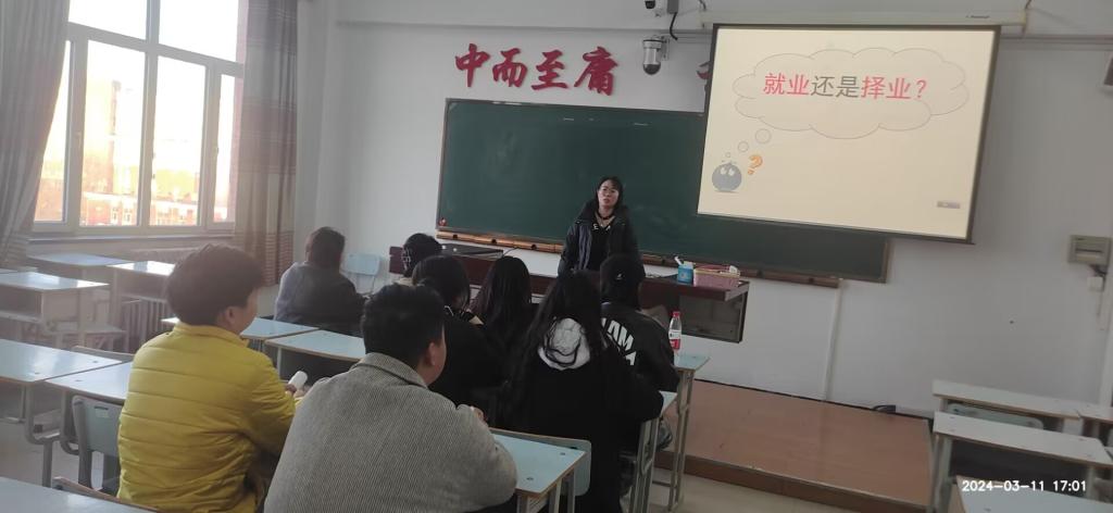 2024年3月11日曹克晶老师在图书馆510为全体即将毕业的生涯学生开展以“择业还是就业”为主题的讲座。