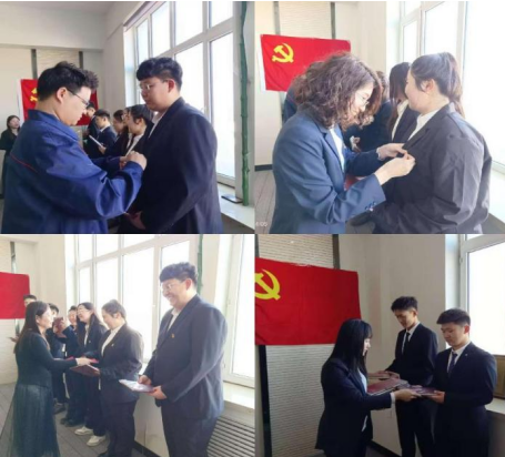 厚感情和为党奋斗终身的决心。随后,教师党员为新党员佩戴党员徽章,这是一种传承,是荣誉的象征。佩戴党员徽章,不仅亮明