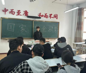 首先团支书介绍了向同学们介绍了国家安全教育日的由来和意义,强调了国家安全教育的重要性。随后向同学们详细讲解了国家安全包括的多个方面,如政治安全、经济安全、军事安全、网络安全等,并结合实际案例,让同学们深刻认识到国家安全与个人息息相关,每个人都应当积极维护国家安全。