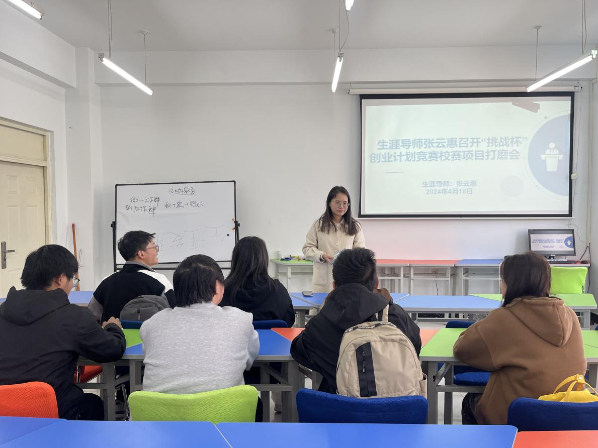 4月18日晚,机电工程系汽服专业生涯导师张云惠在2教2103教室召开“挑战杯”创业计划竞赛校赛项目打磨会。