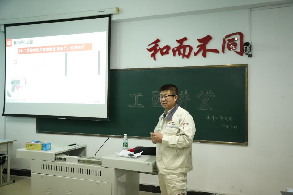 朱文韬教授在讲座中向学生们介绍了工匠精神的内涵,展示了他个人的优秀工作品质和精神。匠心是一种精神,也是一种信仰,匠心是一种态度,更是一种情怀和信念,工匠精神是一种修行,是良心,更是一种坚守。讲座中,朱文韬教授与学生互动交流,让学生对本次活动有了更加深刻的认识。