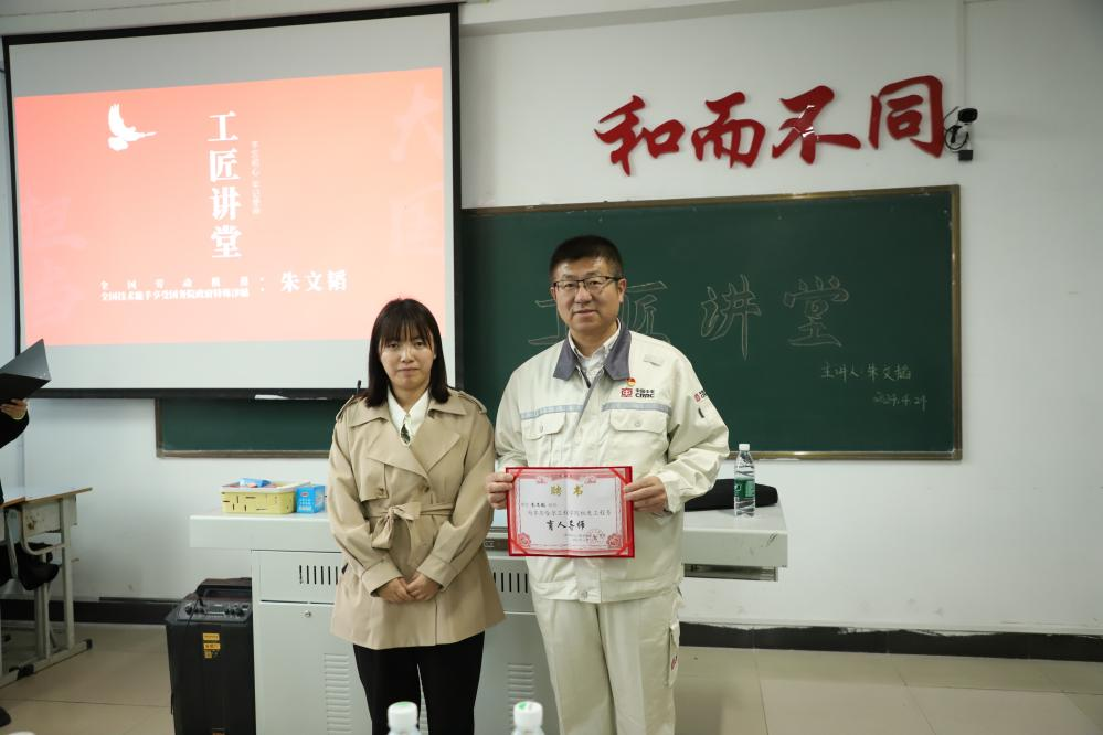 本次活动由学生高亚亚主持,授课前刘微为朱文韬教授颁发机电工程系育人导师聘书。