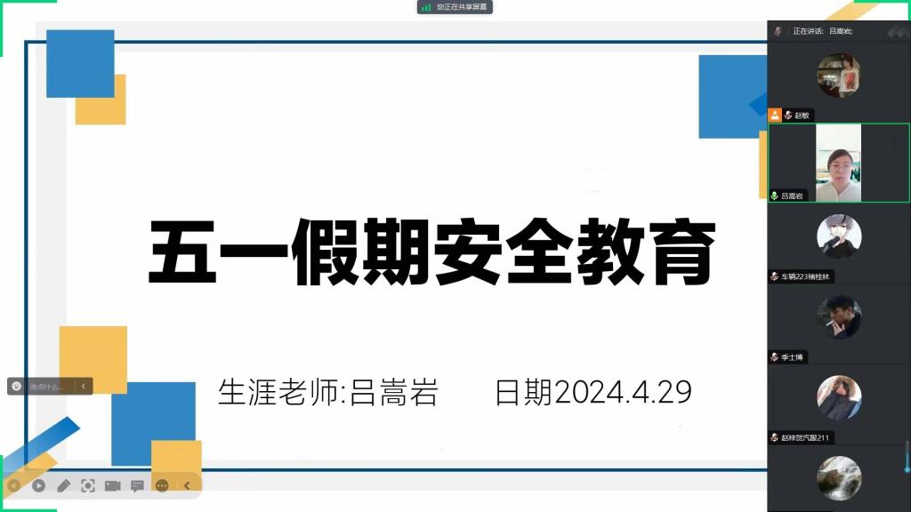 随着五一劳动节的临近,为了增强学生的安全意识,确保学生们度过一个安全、愉快的假期,2024年04月29日生涯导师吕嵩岩老师组织了一场学生假期安全座谈会,所带车辆、汽服学生参加。