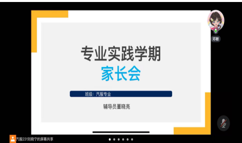 为进一步增强家校联动,形成教育合力,6月26日晚,汽服231班组织召开社会实践学期家长会,本次会议由专业长邓敏和辅导员董晓亮主持,汽服专业其家长近50人线上参会。