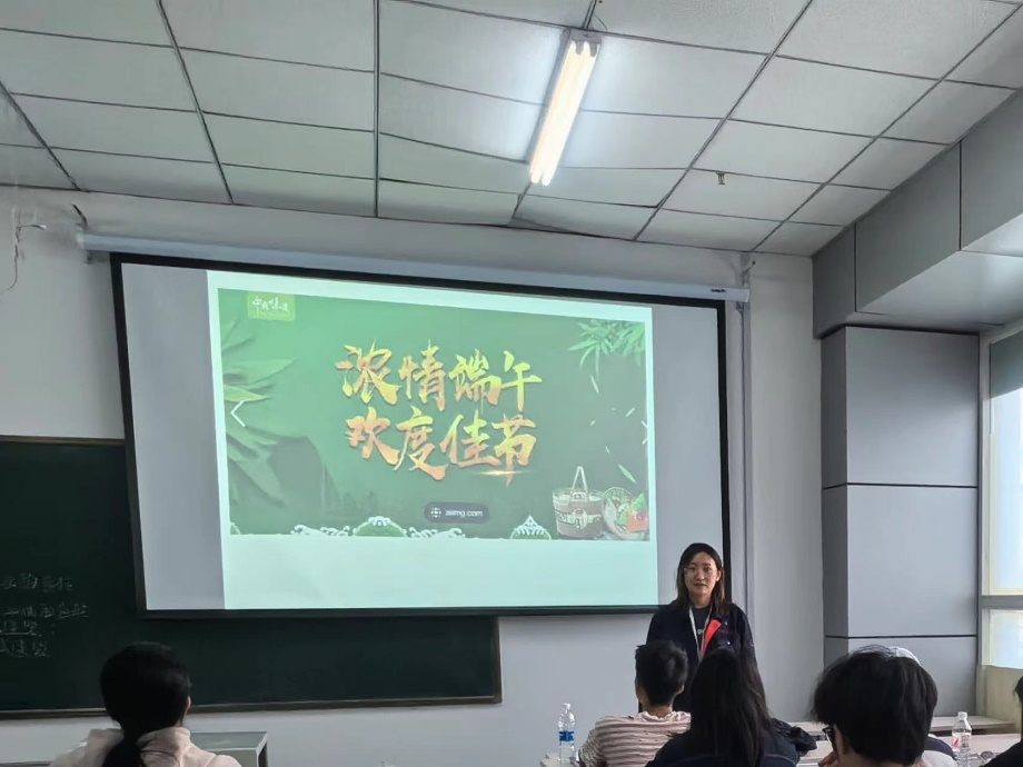 6月10日,贾文静老师利用端午佳节的机会,向同学们介绍了端午节的传统文化,让学生们在轻松愉快的氛围中感受端午节的独特魅力,同时启迪人生,激发他们的生涯规划意识。