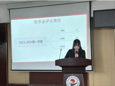 首先,学习部部长韩贝如主要围绕四个方面进行发言,第一点是本学期奖金的评定,本次2023—2024学年第一学期奖学金机电工程系共1990人参与评定,其中,一等奖27人、二等奖88人、三等奖286人。数据指出23级各班一等奖获奖人数少,多个班级一等奖名额浪费,希望之后班级各位同学可以积极学习并参与到一等奖学金的竞选当中。第二点是开学至今早自习早检,机器人22级出勤率比其他专业其他年级高希望继续保持并让各专业其他班级干部也要起好带头作用。第三点是4月我学院创办读书月活动我系同学积极参加,涵盖了各个年级,培养了同学们的读书热情,形成了全民阅读的良好氛围,同时在今年四月份第十四届“挑战杯”大学生创业计划竞赛校赛正式启动以来,我学院49个小组参加比赛,其中25件作品进入校级复赛。第四点是下一步将要采取的计划,实施的措施,以及有关期末的考风考纪。