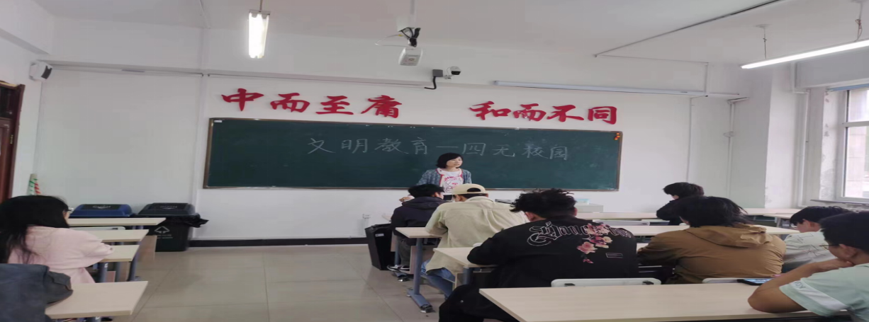 为了加强校园安全管理,提高学生的自我保护意识,辅导员王虹老师于图书馆110召开了一次以“文明教育—四无校园”为主题的会议。