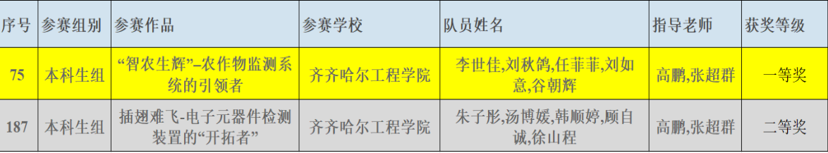 机电工程系机共10名学生参加。电气工程及其自动化专业李世佳、刘秋鸽、任菲菲、刘如意、谷朝辉的《“智农生辉”–农作物监测系统的引领者》取得全国初赛一等奖,顺利进入全国总决赛。电气工程及其自动化专业的朱子彤、汤博媛、韩顺婷、顾自诚、徐山程的《插翅难飞-电子元器件检测装置的“开拓者”》获得全国初赛二等奖。
