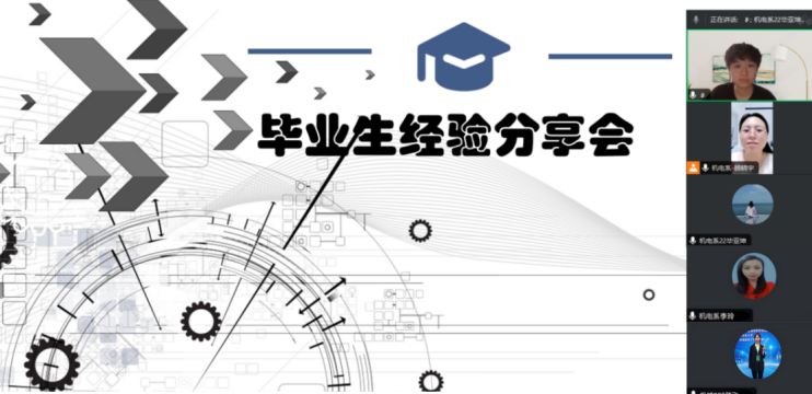 7月23日晚8点顾晓宇老师、毕亚坤老师和李玲老师召开了线上毕业生经验分享会,此次会议共有机械设计制造及其自动化专业生涯学生共计40余名同学参加。